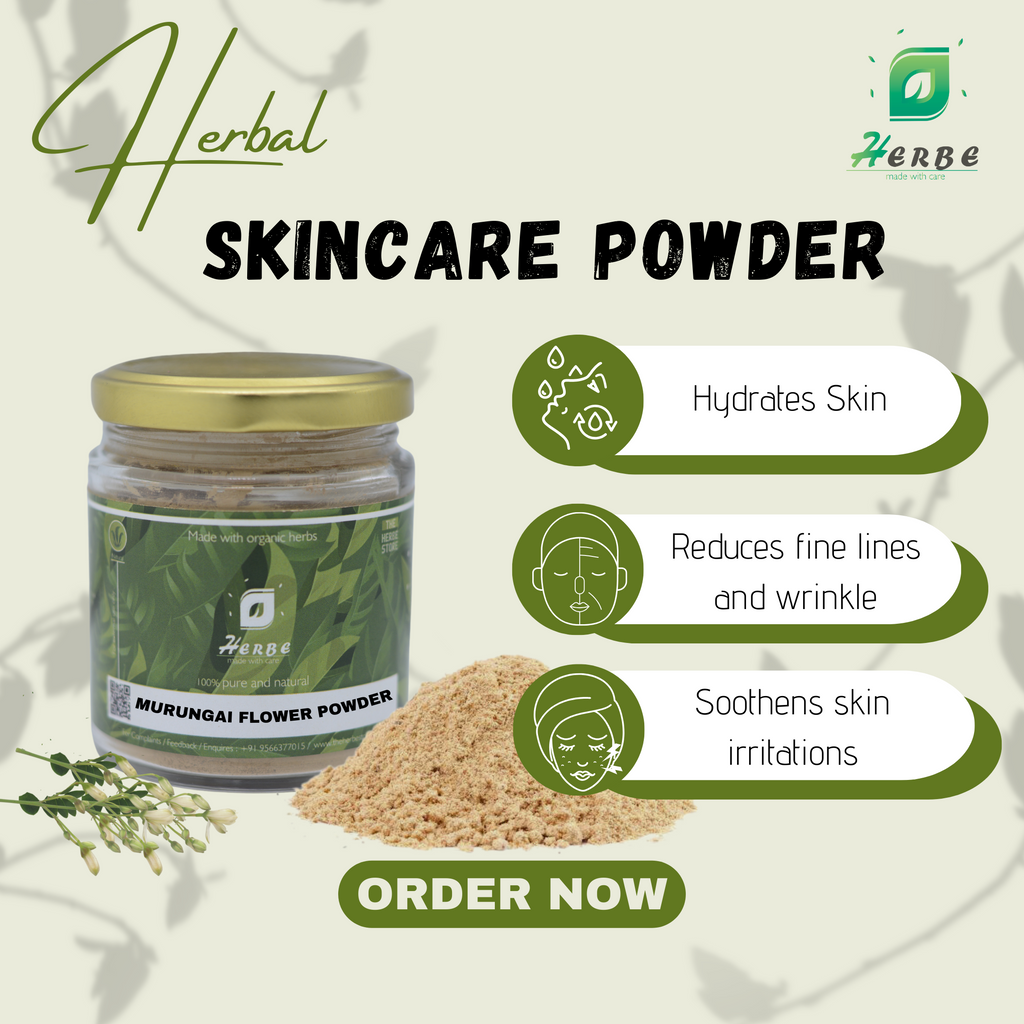 Face pack: Mix a small amount of murungai flower powder with water or rosewater to form a smooth paste. Apply the paste to your face and leave it on for 15-20 minutes before washing it off with lukewarm water.