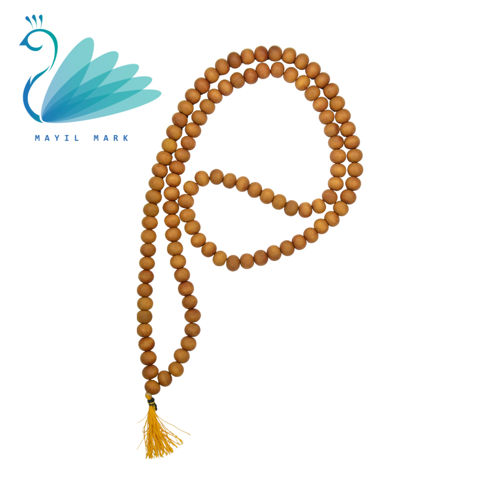 • Sandalwood Mala brings positive vibes to one who wears it.
